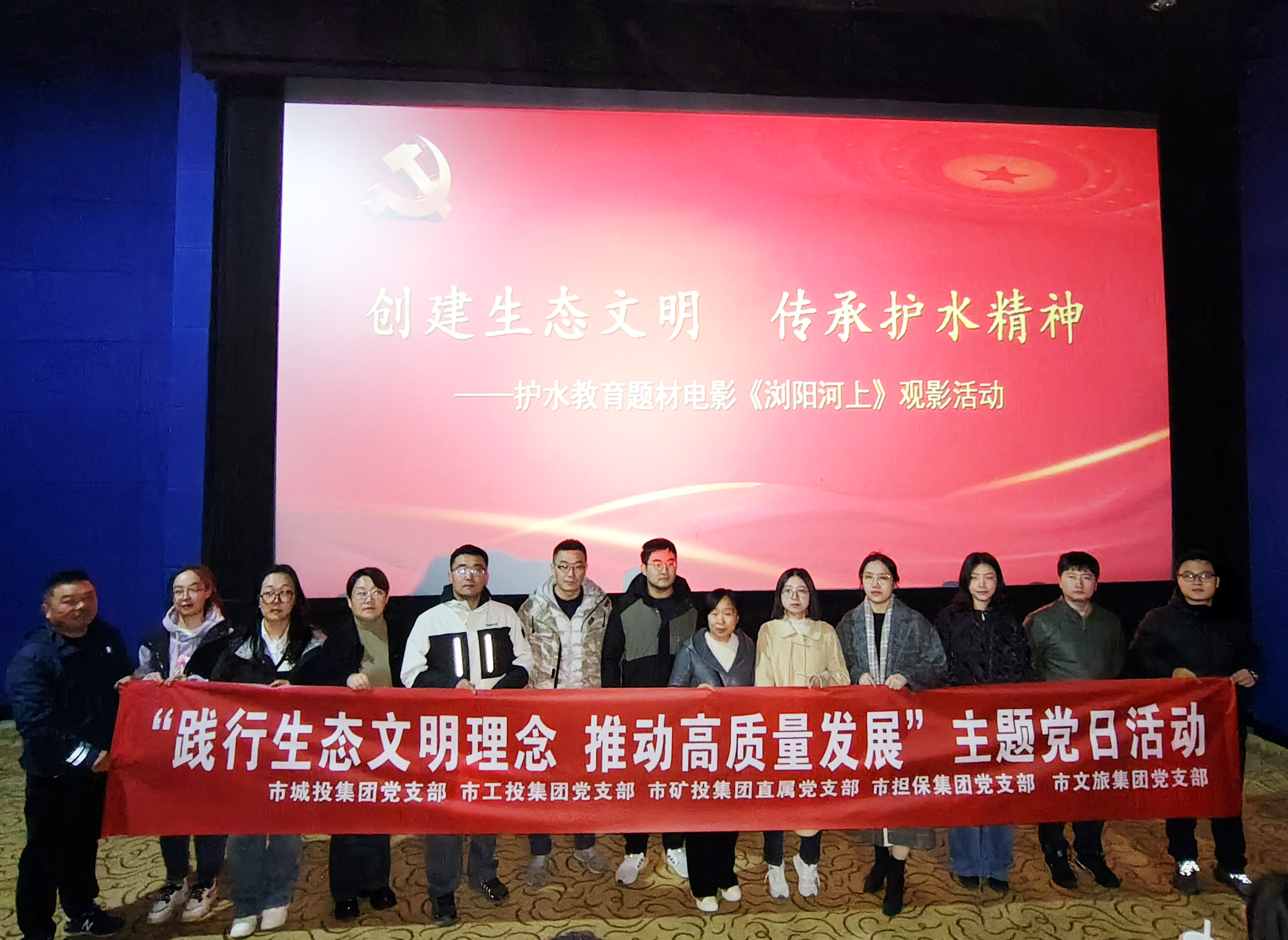 為深入貫徹落實(shí)黨的二十大精神,認(rèn)真踐行習(xí)近平生態(tài)文明思想和習(xí)近平總書記關(guān)于河湖長(zhǎng)制的重要講話指示批示精神,11月17日,市擔(dān)保集團(tuán)聯(lián)合市城投集團(tuán)、市文旅集團(tuán)、市工投集團(tuán)和市礦投集團(tuán)共同開展“創(chuàng)建生態(tài)文明 傳承護(hù)水精神”主題黨日活動(dòng),組織黨員干部職工觀看影片《瀏陽河上》。