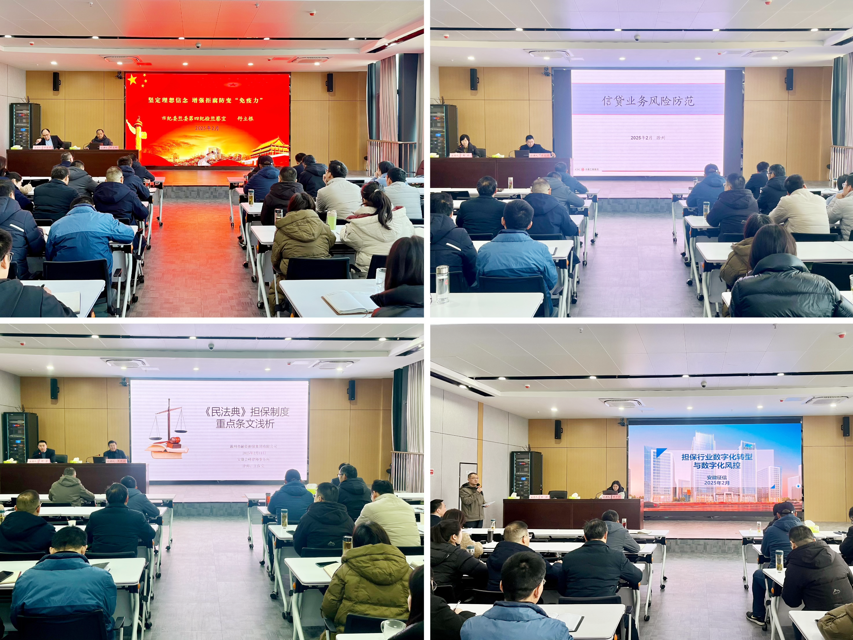 夯實風控基礎,筑牢合規(guī)防線。特邀工商銀行滁州分行信貸專家李文順作《信貸業(yè)務風險防范》專題培訓,系統(tǒng)解析了銀行業(yè)信貸風險演變規(guī)律及防控體系,為擔保業(yè)務全流程風險防控要點及舉措提供了優(yōu)化建議,切實提升了全員對預見、預防、總結業(yè)務風險的能力水平。會峰律師事務所王保安律師以《民法典擔保制度重點條文淺析》為題,重點對“物權法”中涉及擔保抵押業(yè)務的法條進行了細致解讀,并深入擔保業(yè)務場景以案釋法,幫助全體職工研判形勢變化,識別防范新法律風險。