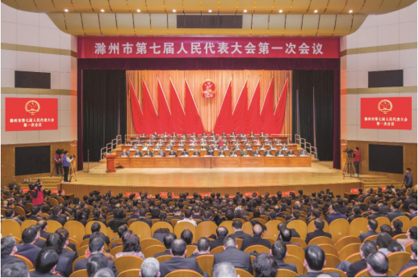 1月9日上午,滁州市第七屆人民代表大會第一次會議圓滿完成各項議程后,在滁州大劇院勝利閉幕。